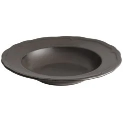 Acopa Condesa 28 Oz. Matte Finish Armor Gray Scalloped Wide Rim Porcelain Pasta Bowl – 6/Case