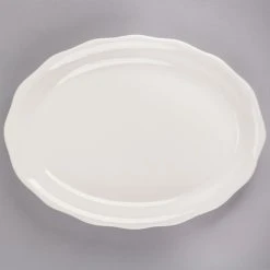 Acopa 12 5/8″ X 9 1/4″ Ivory (American White) Scalloped Edge Oval Stoneware Platter – 12/Case