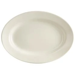 Acopa 12 1/2″ X 8 7/8″ Ivory (American White) Wide Rim Rolled Edge Oval Stoneware Platter – 12/Case