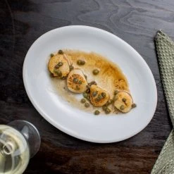 Acopa 9 3/8″ X 6 1/2″ Bright White Wide Rim Rolled Edge Oval Stoneware Platter – 24/Case
