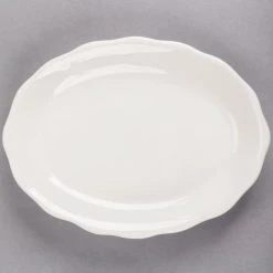 Acopa 9 5/8″ X 7 1/8″ Ivory (American White) Scalloped Edge Oval Stoneware Platter – 24/Case