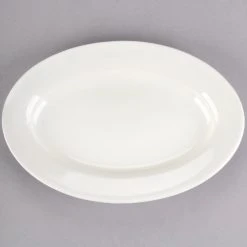 Acopa 9 3/8″ X 6 1/2″ Ivory (American White) Wide Rim Rolled Edge Oval Stoneware Platter – 24/Case
