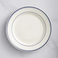Acopa 9″ Ivory (American White) Stoneware Wide Rim Plate With Green Bands – 24/Case
