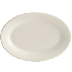 Acopa 10 3/8″ X 7 1/8″ Ivory (American White) Wide Rim Rolled Edge Oval Stoneware Platter – 24/Case