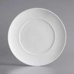 Sample – Acopa Liana 10 1/2″ Bright White Embossed Lines Wide Rim Porcelain Plate