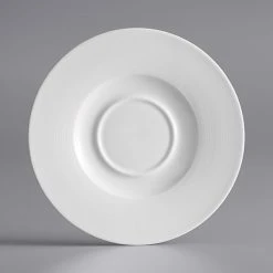 Sample – Acopa Liana 6″ Bright White Embossed Lines Wide Rim Porcelain Saucer