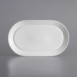 Sample – Acopa Liana 14″ X 8 1/4″ Bright White Embossed Lines Wide Rim Porcelain Platter