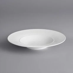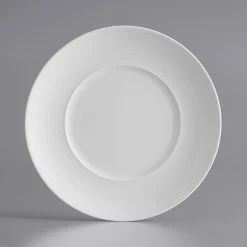 Sample – Acopa Liana 11 3/4″ Bright White Embossed Lines Wide Rim Porcelain Plate
