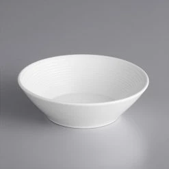 Sample – Acopa Liana 9 Oz. Bright White Embossed Lines Wide Rim Porcelain Soup Bowl