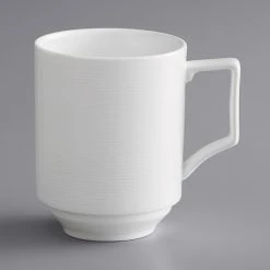 Sample – Acopa Liana 9 Oz. Bright White Embossed Lines Stackable Porcelain Cup