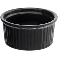 Acopa 4.5 Oz. Glossy Black Fluted Stoneware Ramekin – 12/Pack