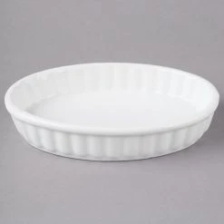 Acopa 6 Oz. Oval Bright White Fluted Porcelain Souffle / Creme Brulee Dish – 12/Pack