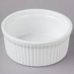 Acopa 10 Oz. Round Bright White Fluted Porcelain Souffle / Creme Brulee Dish – 24/Case