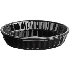Acopa 10 Oz. Round Glossy Black Fluted Stoneware Souffle / Creme Brulee Dish – 24/Case
