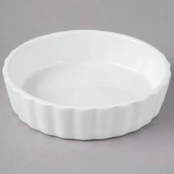 Acopa 8 Oz. Round Bright White Fluted Porcelain Souffle / Creme Brulee Dish – 12/Pack