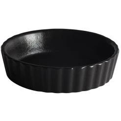 Acopa 8 Oz. Round Glossy Black Fluted Stoneware Souffle / Creme Brulee Dish – 36/Case